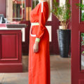 Straight cut -adjusted at the waist with strech rib – kimono sleeves adjusted around the wrists with stretch rib – boat neck – 2 slits in the front – design slanted pockets.